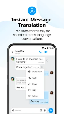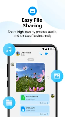 imo Messenger pruža sveobuhvatnu platformu za slanje tekstualnih i glasovnih poruka, deljenje fotografija, video zapisa i dokumenata različitih formata, uključujući .DOC, .MP3, .ZIP i .PDF. Sva vaša istorija razgovora i datoteke sigurno se sinhronizuju u imo Cloudu, čime se oslobađa dragoceni prostor na vašem uređaju. Premošćavanje jezičkih barijera nikada nije bilo lakše zahvaljujući funkciji trenutnog prevođenja poruka, omogućavajući vam nesmetane i tečne razgovore sa ljudima iz bilo kog dela sveta. Delite datoteke bilo koje veličine u njihovom originalnom kvalitetu, uz intuitivno sortiranje i opciju zaštite privatnosti.