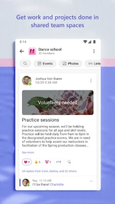 Transformišite vaše ideje u dela i ostvarite projekte zajedničkim snagama. Microsoft Teams vam omogućava da lako delite fotografije i video zapise, čuvate i pristupate dokumentima i datotekama u oblaku, osiguravajući da su vam važni resursi uvek pri ruci. Organizujte sav deljeni sadržaj – događaje, slike, linkove, dokumente – unutar posvećenih zajednica, eliminišući gubljenje vremena na pretragu. Iskoristite sastanke do maksimuma uz deljenje ekrana, interaktivnu belu tablu i opciju za odvojene sobe za fokusiraniji rad. Upravljajte pristupom informacijama precizno, obezbeđujući da pravi ljudi imaju pristup pravim podacima, bez obzira na promene u timu. Ostanite na vrhu zadataka pomoću lista, dodeljujući obaveze i rokove, čime održavate sve članove tima usklađenim.