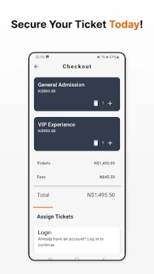 Zaboravite na duge redove i brigu oko gotovine. Uz NamEvents, kupovina ulaznica je brza i sigurna, dostupna direktno putem aplikacije. Sve vaše ulaznice su uredno smeštene na jednom mestu, uvek pri ruci. Dalje, NamEvents donosi potpunu slobodu bezgotovinskog plaćanja. Dopunite svoj NamEvents novčanik za nekoliko sekundi i koristite ga za plaćanje na barovima, štandovima sa hranom, prodavnicama suvenira i drugim lokacijama. Svaka transakcija se jasno beleži unutar aplikacije, pružajući vam potpunu kontrolu i pregled potrošnje. Ulazak na događaj nikada nije bio lakši i sigurniji; jednostavno skenirajte svoj QR kod na vratima za instant verifikaciju i prolazak bez ikakvih kašnjenja.