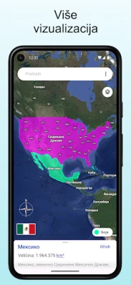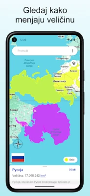 Korišćenje je neverovatno intuitivno i zanimljivo. Dovoljno je da pretražite željenu državu ili je jednostavno pritisnete i zadržite prst na ekranu. Zatim je možete slobodno pomerati po karti, posmatrajući kako se njena veličina dinamično menja u zavisnosti od udaljenosti od ekvatora. Bićete iznenađeni otkrićima! Pored vizuelnog iskustva, ova aplikacija će vas obogatiti i fascinantnim činjenicama o svakoj lokaciji koju istražujete, produbljujući vaše znanje o svetskoj geografiji na interaktivan način.