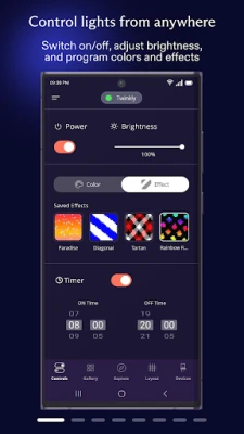 Twinkly App pruža obilje jedinstvenih mogućnosti za potpuno upravljanje i kontrolu vaših uređaja. Istražujte, modifikujte i kreirajte fascinantne svetlosne efekte po sopstvenoj meri, oslobađajući vašu kreativnost.